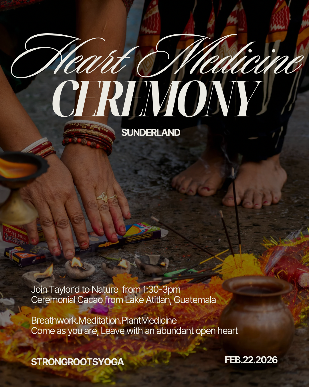 Join us for a nourishing Heart Medicine Cacao Ceremony at Strong Roots Yoga—an intimate gathering devoted to connection, intention, and gentle inner exploration. Guided by the sacred spirit of ceremonial cacao, this experience invites you to soften, open the heart, and reconnect with yourself in a supportive, grounded space.